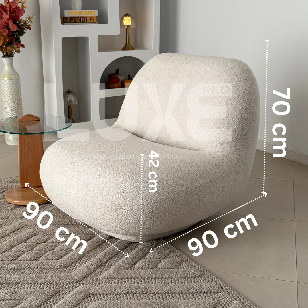 Crafted with premium upholstery and a soft, cozy texture, the Melli Armchair brings warmth, elegance, and a sense of calm to your living room or bedroom. Its minimalist form blends effortlessly into modern, boho, or luxury interiors.