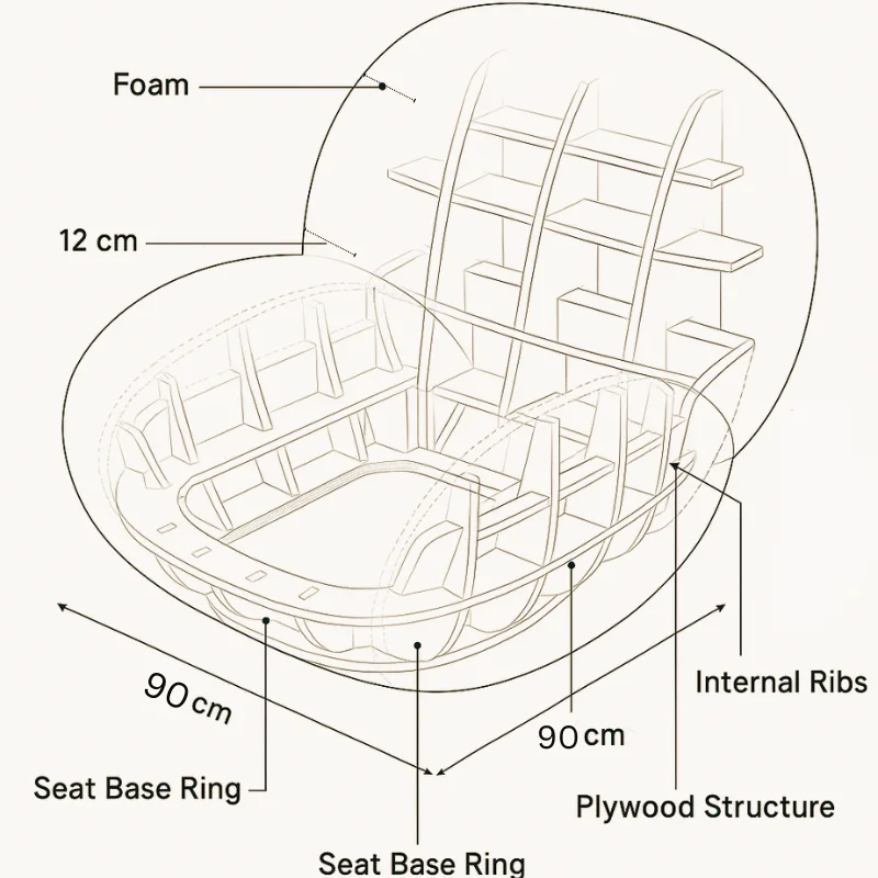Cette méthode de construction est utilisée dans les meubles haut de gamme internationaux, reconnue pour son rapport solidité/poids et sa longévité. Associée à notre mousse haute densité et à un savoir-faire artisanal, elle donne un fauteuil qui est à la fois confortable, premium et conçu pour durer.